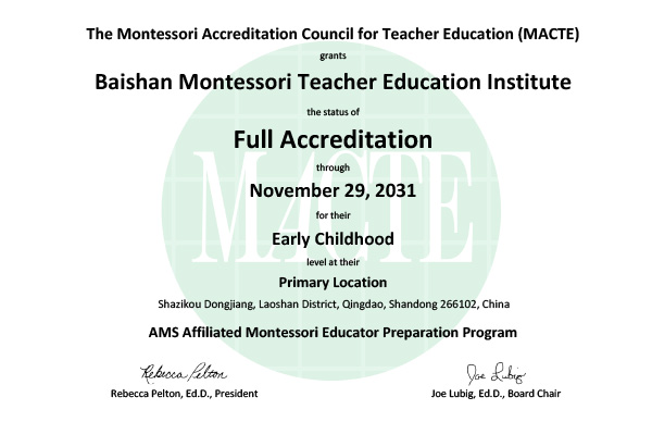 The Early Childhood program at BMTEI is MACTE-accredited and affiliated by AMS and is conducted in English and Chinese with translation.